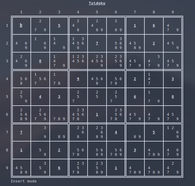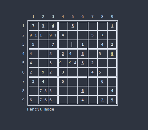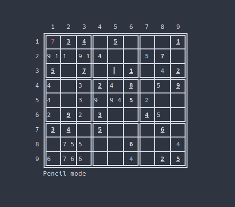 Simple ncurses program to play sudoku in the terminal written entirely in C++