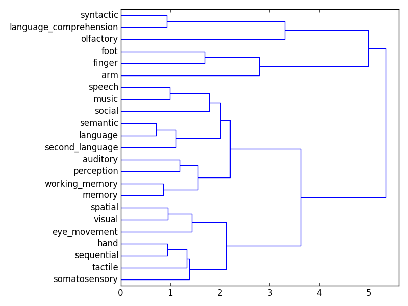 matrix.compute_distances(['syntactic', 'speech', 'semantic', 'music'])