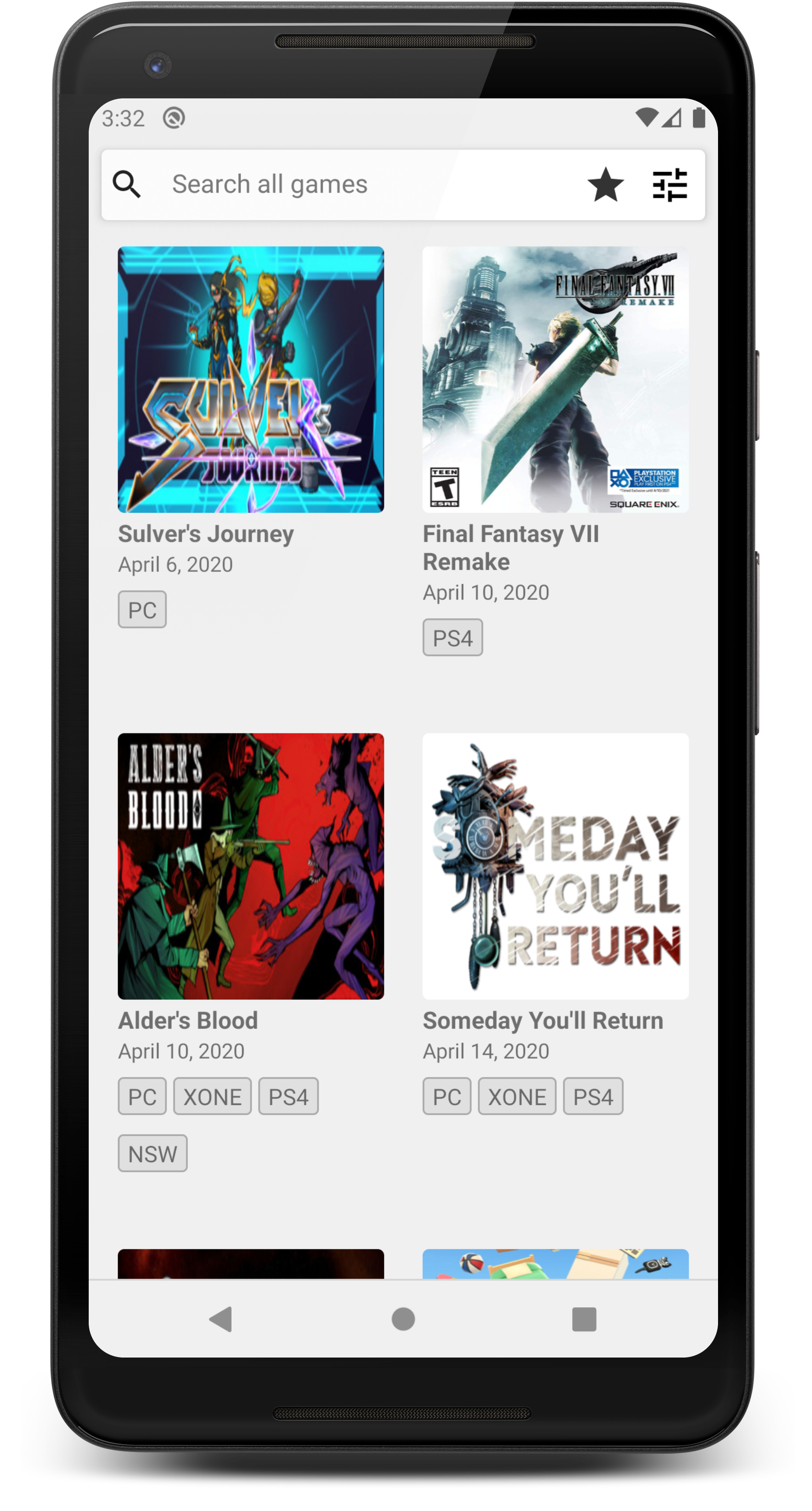 View release dates and other info for every video game ever made. Keep track of your favorite and most anticipated games easily. Contains full sorting and search capabilities. Database updates itself periodically using WorkManager.