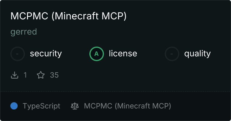 This PR adds a badge for the MCPMC (Minecraft MCP) server listing in Glama MCP server directory.