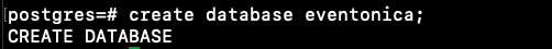 create database eventonica;(don't forget the semicolon!)