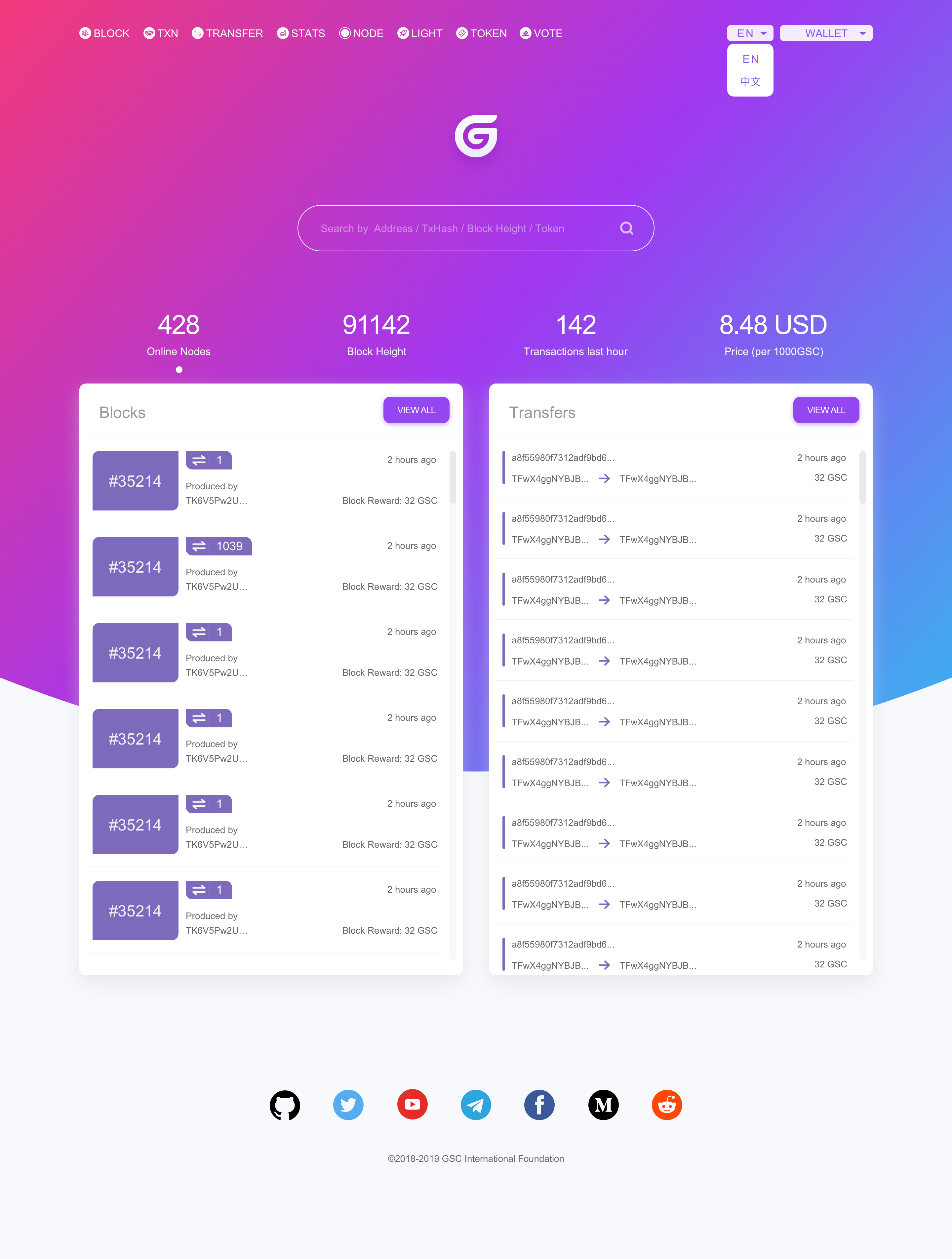 GSC Explorer is a Block Explorer and Analytics Platform for GSC, a decentralized smart contracts platform.