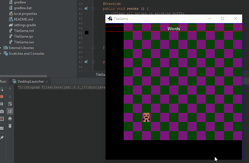 - Note: If your tiles are glitchy when you move around the map with your camera, refer to: https://stackoverflow.com/questions/23144367/why-do-i-have-lines-going-across-my-libgdx-game-using-tiled. Further examination shows that, your tilemap's .png source will need padding to accomidate for rendering.