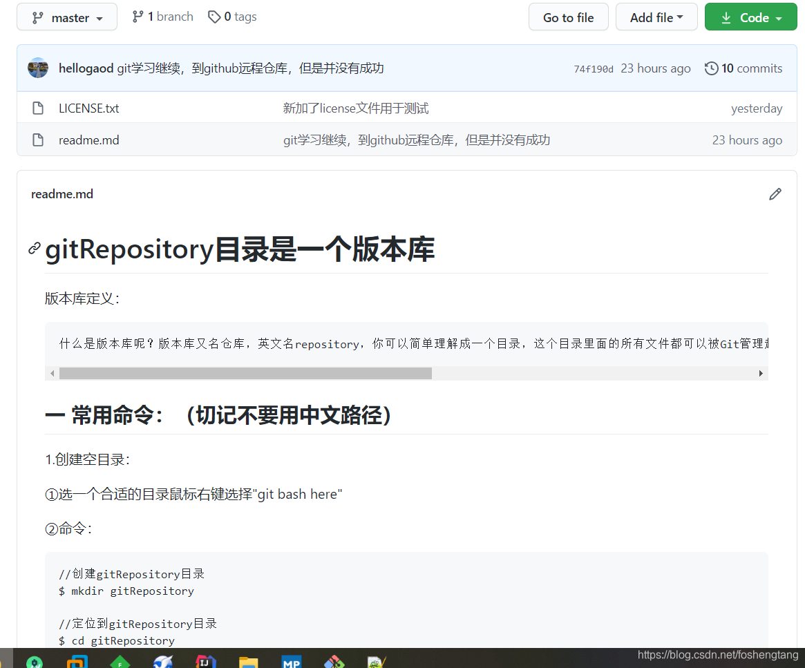 (3)此后,每次本地提交后,只要有必要,就可以使用命令git push origin master推送最新修改;
