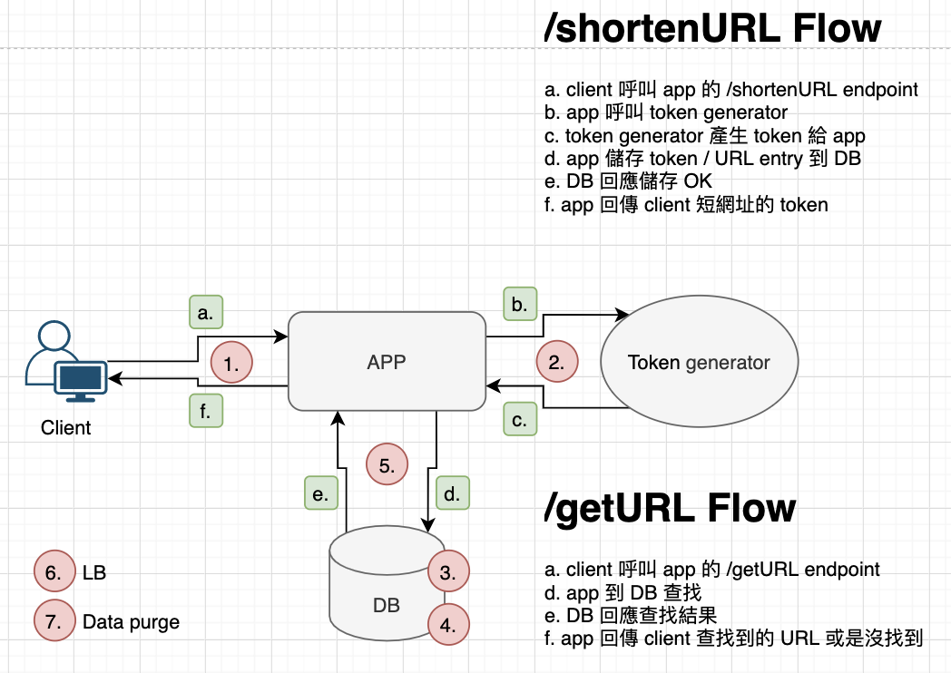 - 而目前的實作品假設前面還有 web server 與 web 前端服務來處理真正的轉址行為