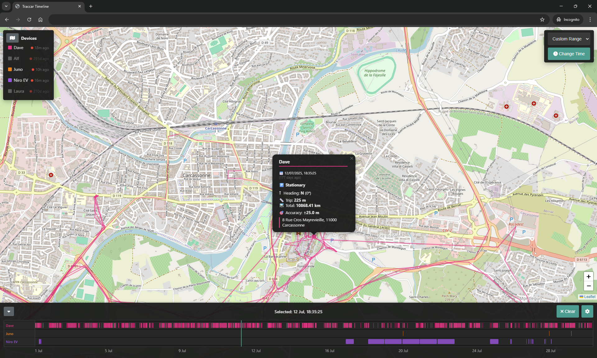 traccar.html- single page HTML/JS Traccar API timeline app.