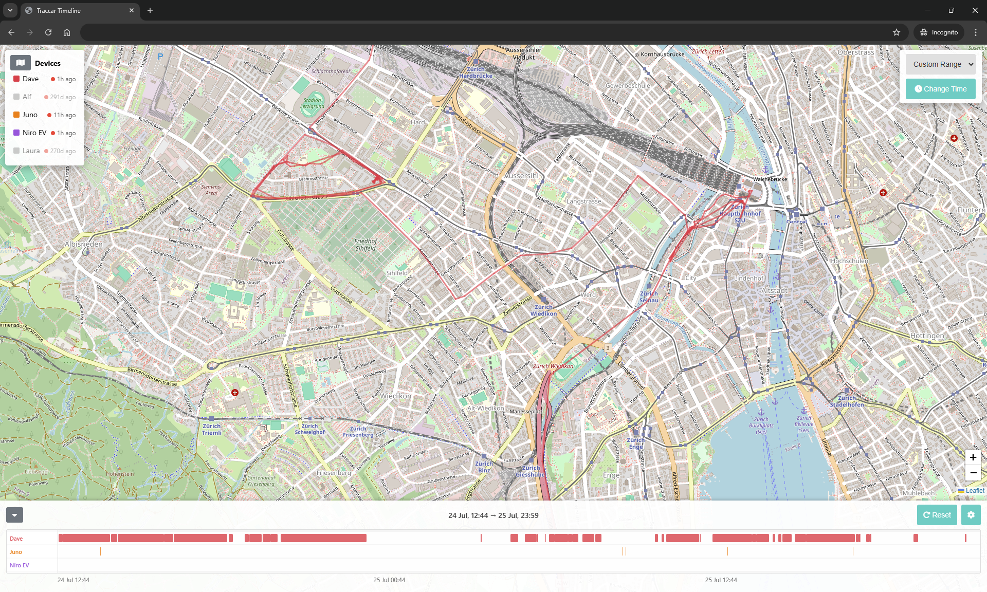 Download the traccar.html file to your pc and load it in chrome! - That's it! or visit https://iamdabe.github.io/Traccar-Timeline/traccar.html or, alternatively setup nginx and serve the html file. No database, no config no extra fat needed! All settings saved to the browser.