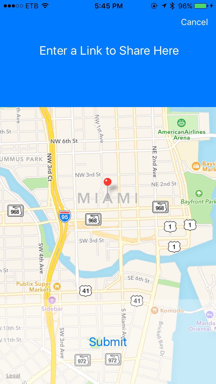 This view has two tabs at the bottom: one specifying a map, and the other a table. When the map tab is selected, the view displays a map with pins specifying the last 100 locations posted by students. The user is able to zoom and scroll the map to any location using standard pinch and drag gestures. When the user taps a pin, it displays the pin annotation popup, with the student’s name (pulled from their Udacity profile) and the link associated with the student’s pin. Tapping anywhere within the annotation will launch Safari and direct it to the link associated with the pin. Tapping outside of the annotation will dismiss/hide it. When the table tab is selected, the most recent 100 locations posted by students are displayed in a table. Each row displays the name from the student’s Udacity profile. Tapping on the row launches Safari and opens the link associated with the student. Both the map tab and the table tab share the same top navigation bar. The rightmost bar button will be a refresh button. Clicking on the button will refresh the entire data set by downloading and displaying the most recent 100 posts made by students. The bar button directly to its left will be a pin button. Clicking on the pin button will modally present the Information Posting View.