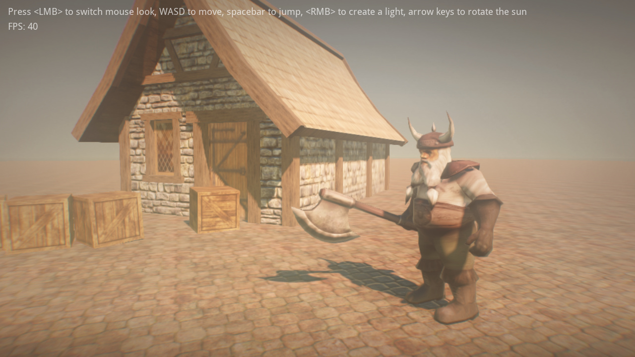 - Flexible material system with simple user-defined data model (interface) and shaders (backend). You can implement custom materials, with your own shaders and parameters