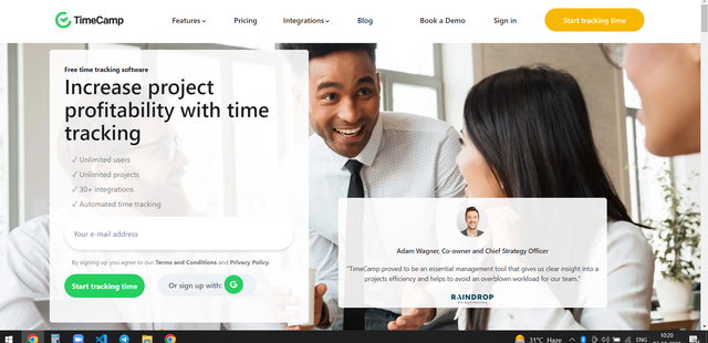 This is the project we tried to clone the website Time camp (https://www.timecamp.com) we were a team of 5 people who have contibuted in this project. Time Camp is a is a web-based application and is dedicated either to freelancers or teams, it automates the processes connected to project and task management by the use of automatic time tracking.