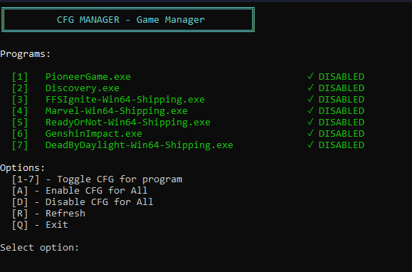 - Batch Operations - Enable or disable CFG for all games at once