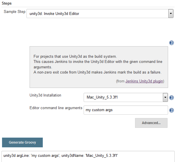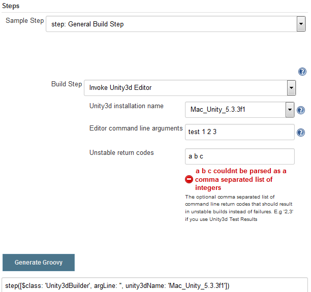 Unity3dBuilderStepclass and changesUnity3dBuilderto implement theSimpleBuildStepinterface. This changes the perform method to require aRun<?, ?>instead of anAbstractBuild<?, ?>. ARundoes not have access to a workspace, so aFilePathis injected for alternative access to paths andComputers.I've moved out some methods to a helper class for use by the Unity3dBuilderStep class.