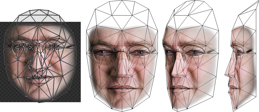 - Deform the Candide-3 mesh to the given head pose and face features