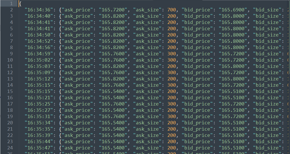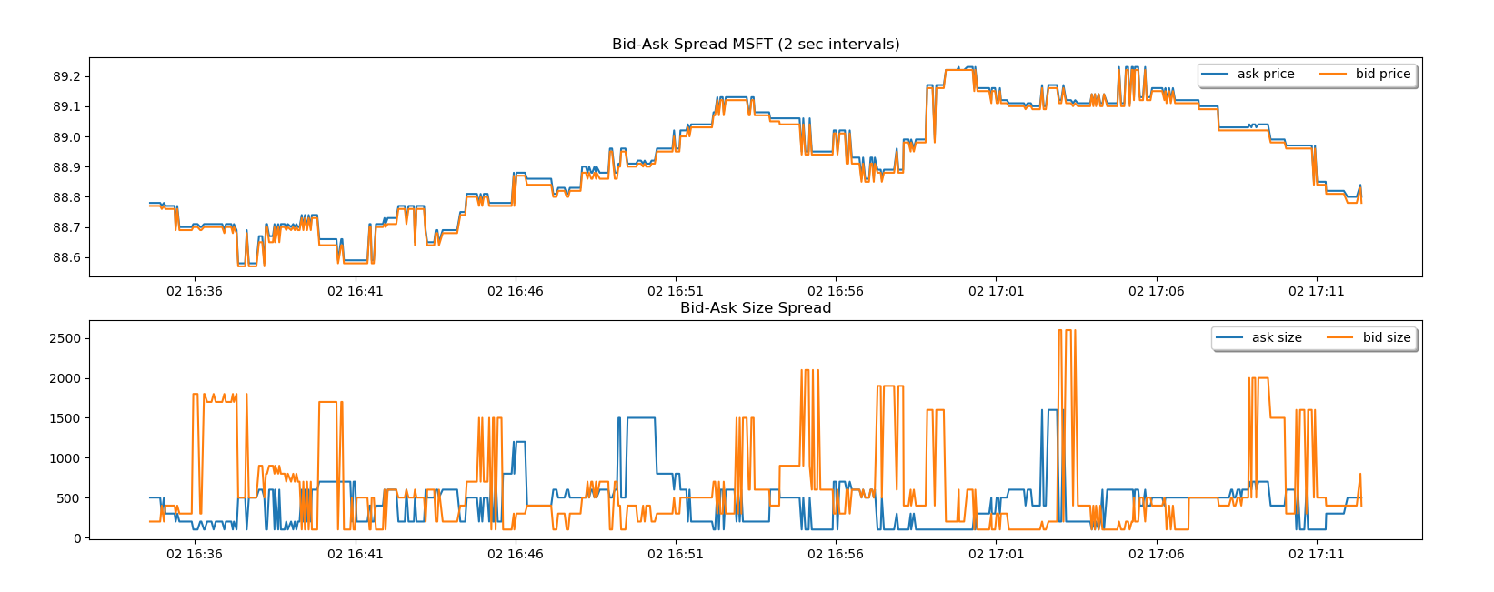 For example, I designed the plot to display the bid-ask spread and the bid-ask volume spread. But this data is good for more than just plotting.