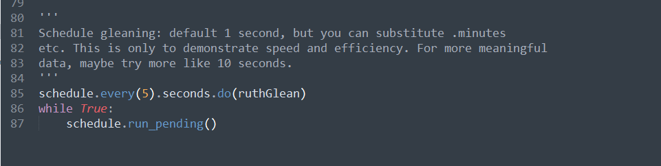 In order to change the interval at which Ruth gleans, go to the bottom of the file and change the number and time unit to whatever you desire.