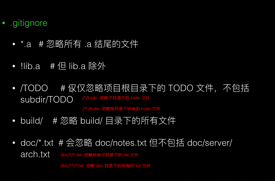 git rm --cache a.txt 移除暂存区中的 a.txt,不对该文件进行跟踪