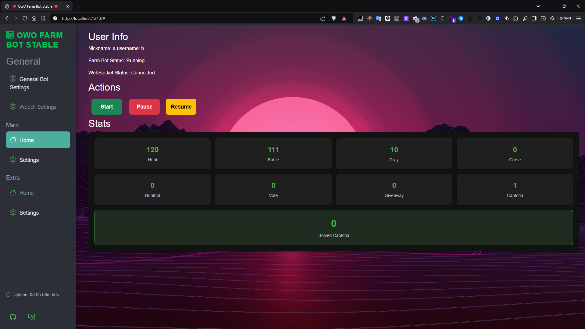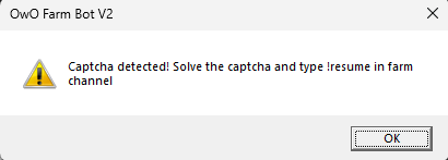 - Use of this farm bot may lead to actions being taken against your OwO profile and/or your Discord account. We are not responsible for them.