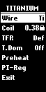 - Wire - coil material, temperature sensing or not (VW), can be set to standard or user-defined TFR;