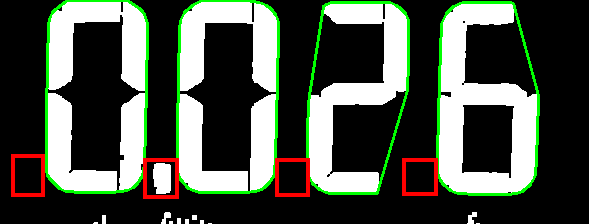 Today we just do padding after the digits contours are found, but this sometimes doesn't work because the distance is not fixed for all seven-segment displays. I would suggest creating a region between two adjacent digits contours so it can be dynamic. For the first digit, I would use a fixed region.