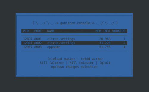 A curses application for managing gunicorn processes. The ps command is