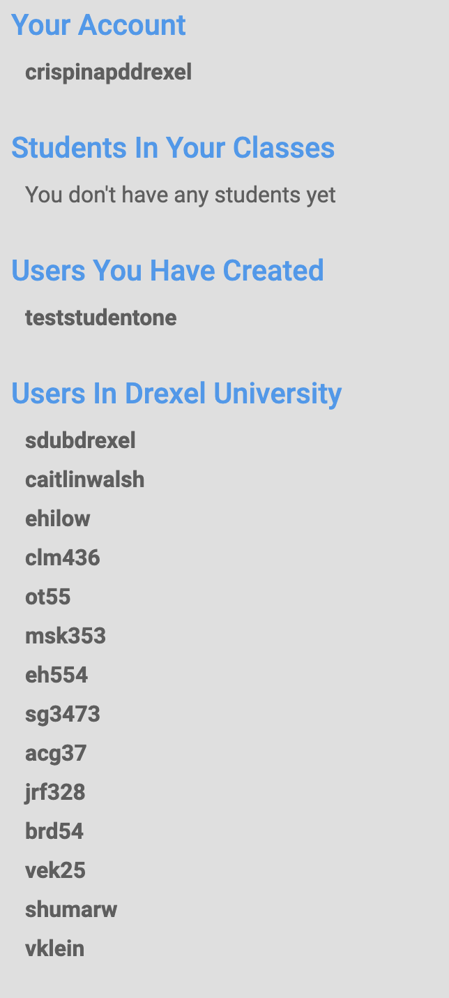 Have a slider or radio or indicator to switch between a normal list of users to filter by organization, similar to view if by a teacher(see screenshot attached).