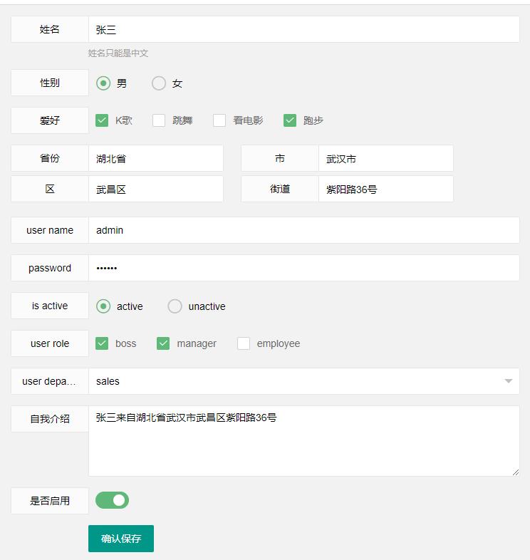 支持行内表单(支持表单表单指定默认隐藏和展示)