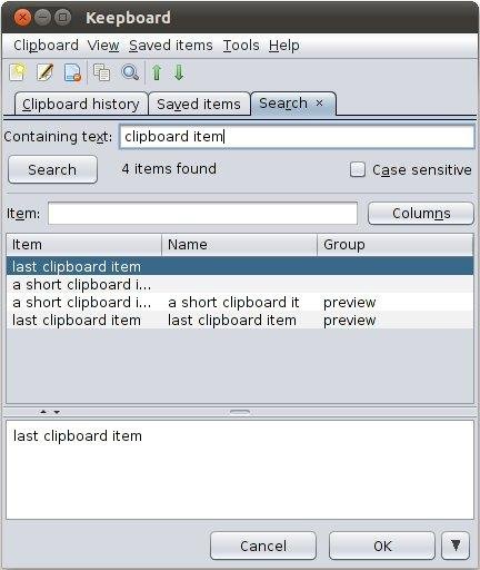 Keepboard is a free open source java clipboard manager that can save clipboard history (either automatically or on-demand) and provides the ability to quickly search and paste clipboard items copied in the past.