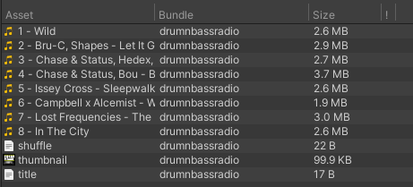 - Your asset bundle should contain all the audio clips you want to include in your station.