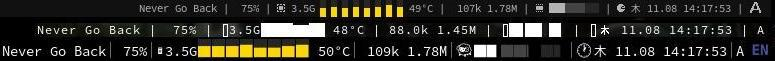 from top to bottom: dzen2, urxvt, i3bar. This example demonstrates the new output modes (and guessOutput).