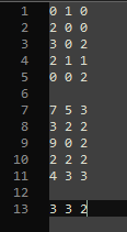 Each number should be delimited by a space, and each process should be delimited by a line. Each block should have an empty line between them. Your input file should end up looking like this: