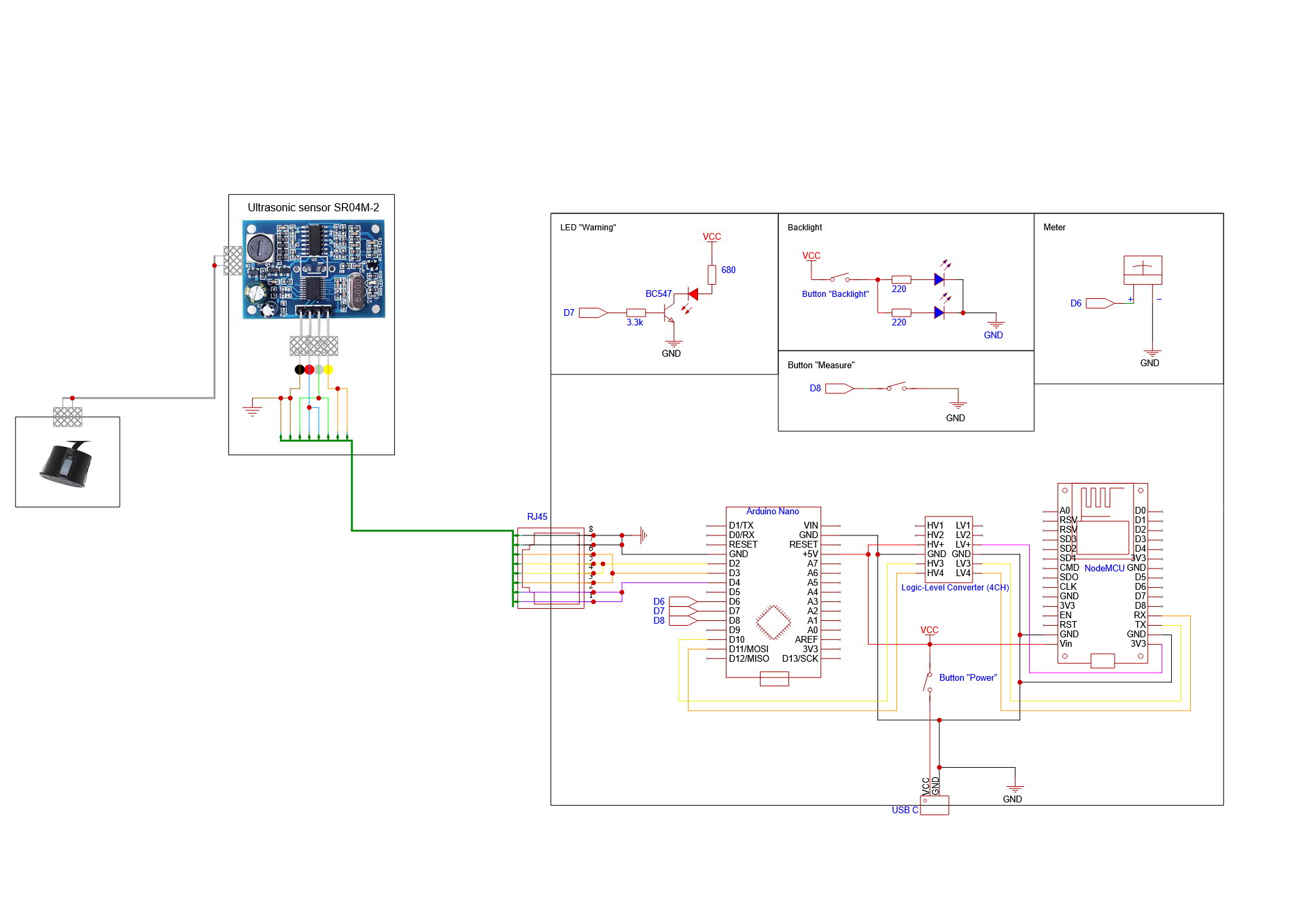 Consists of 2 modules: Arduino Nano and NodeMCU V3.