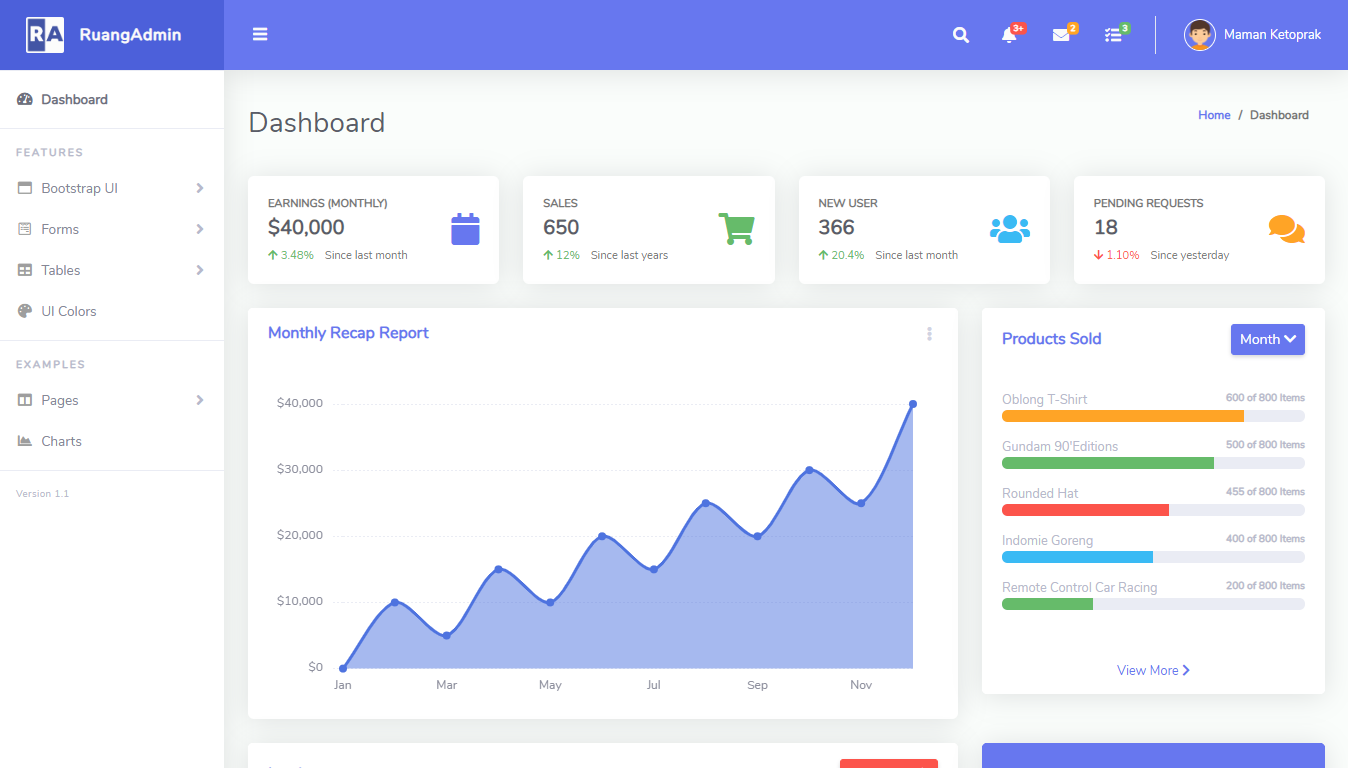 RuangAdmin - Free Admin Control Panel Themes Based on Bootstrap 4