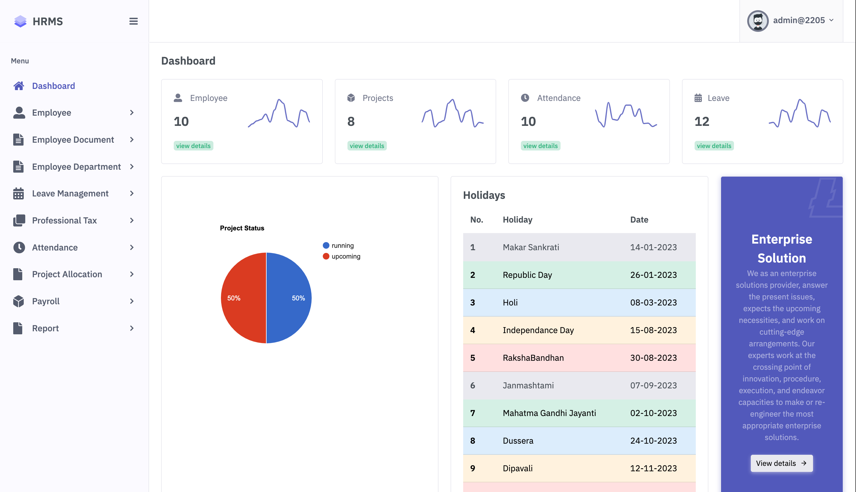 - User Roles: Different user roles with specific access rights (Admin, HR, Employee).
