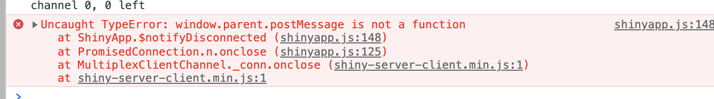Or Shiny might say, "ERROR: An error has occurred. Check your logs or contact the app author for clarification."