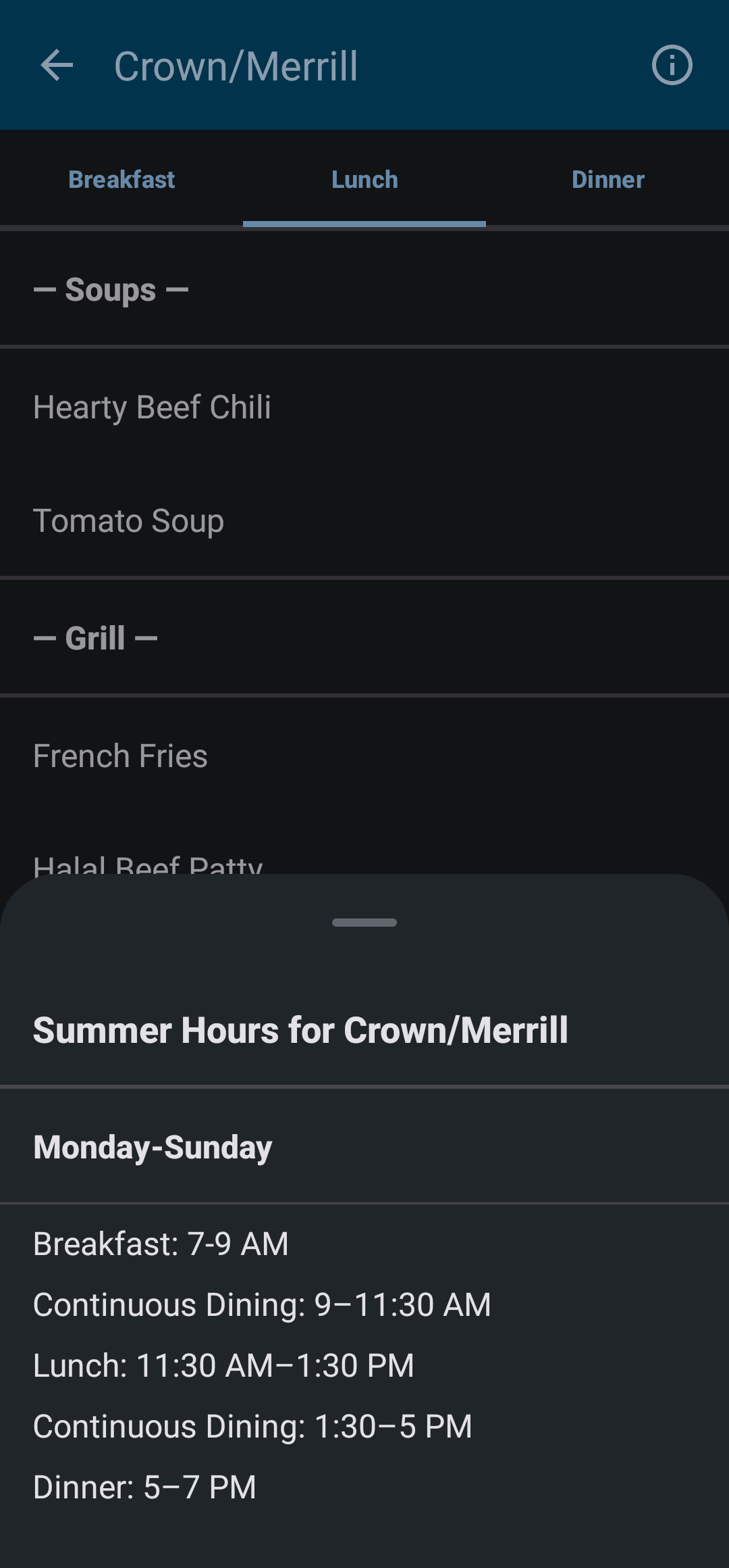 View breakfast, lunch, dinner, and late night menus at campus dining halls.