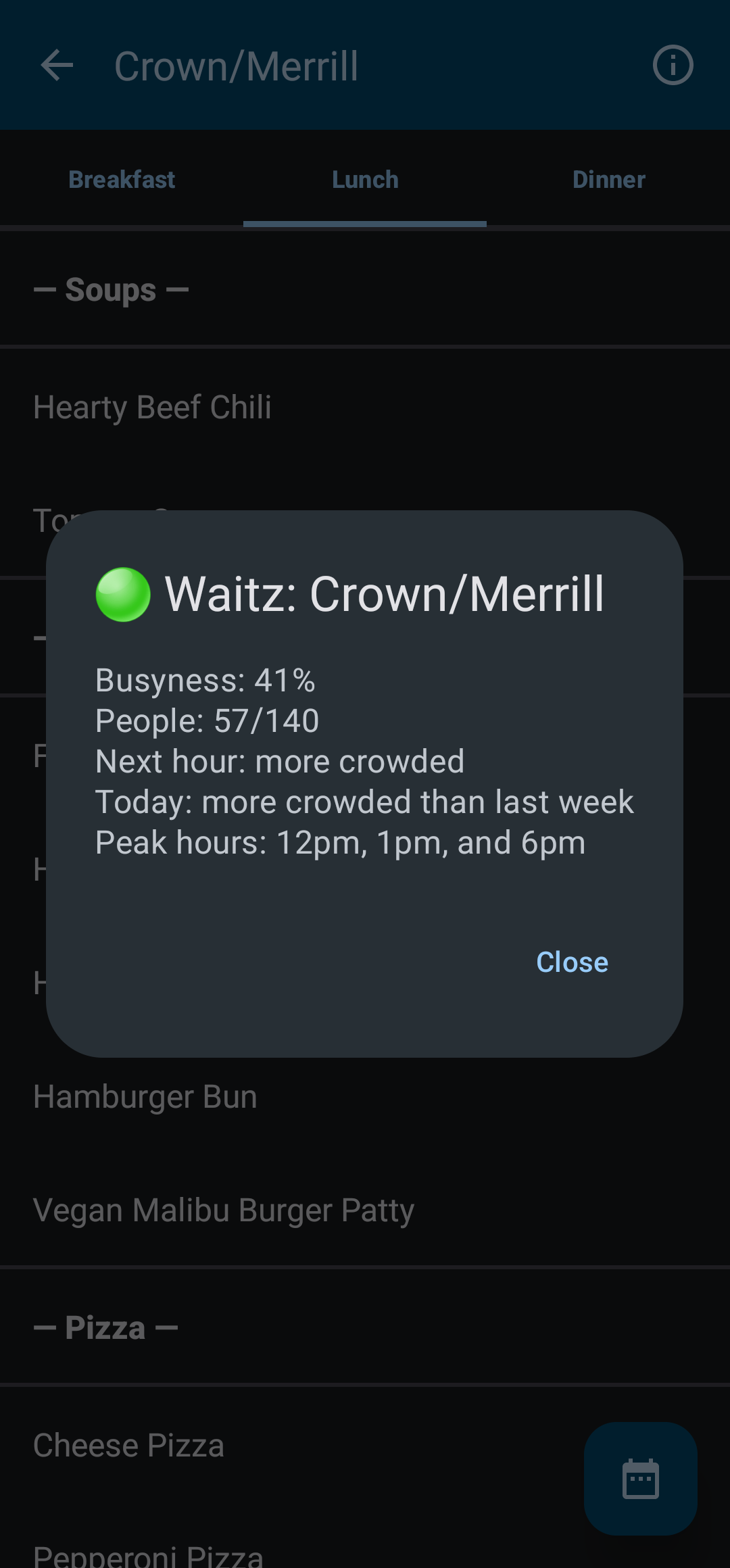 View how crowded each dining hall/cafe is at a given moment with Waitz live data.