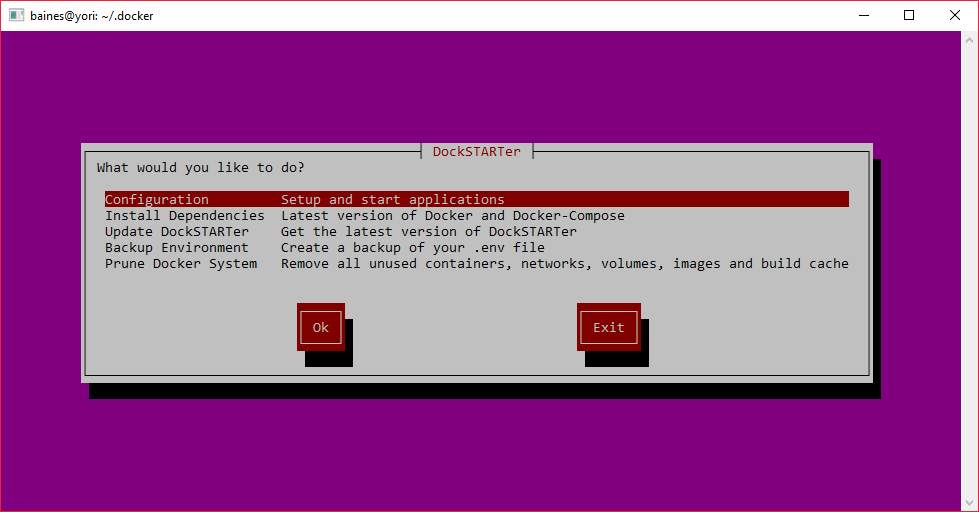 sudo rebootdsTo run DockSTARTer, use the command above. You should now see the main menu from the screenshots. Select Configuration and then Full Setup, and you will be guided through selecting apps and starting containers.