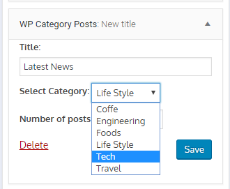 - Go to Appearence-> Widgets->WP category Post widget