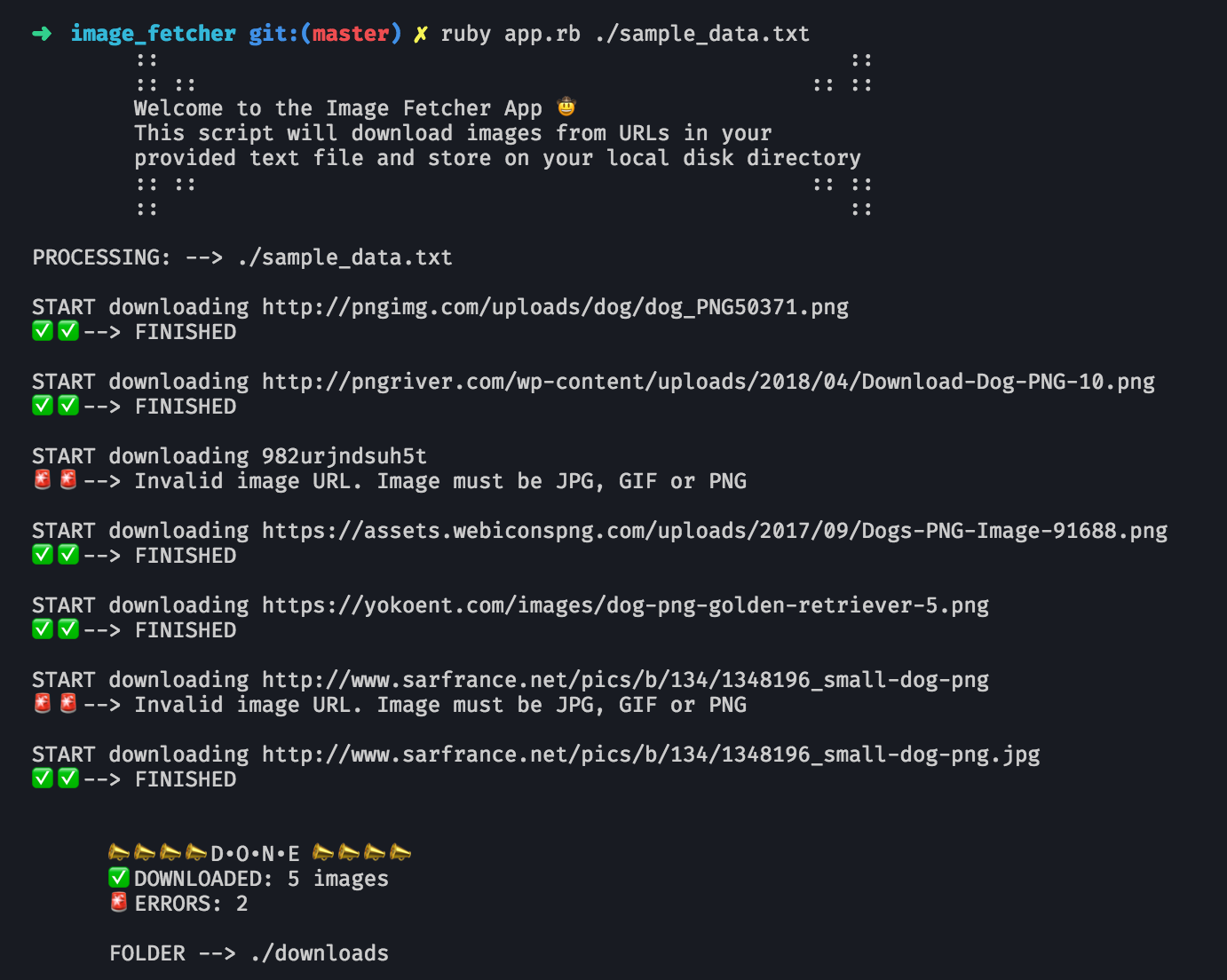 The Image Fetcher app is a Ruby Script that does the following: