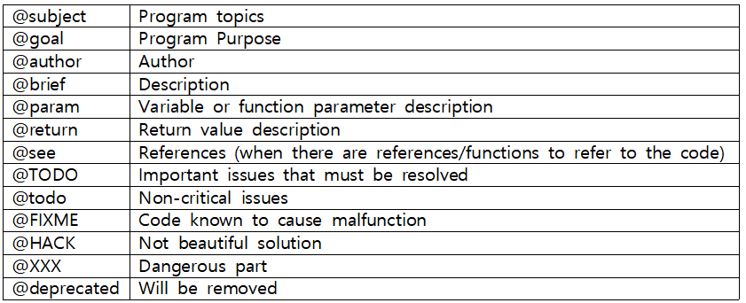 협력자들이 쉽게 읽을 수 있도록 주석 작성 방식을 아래와 같이 제한했다.