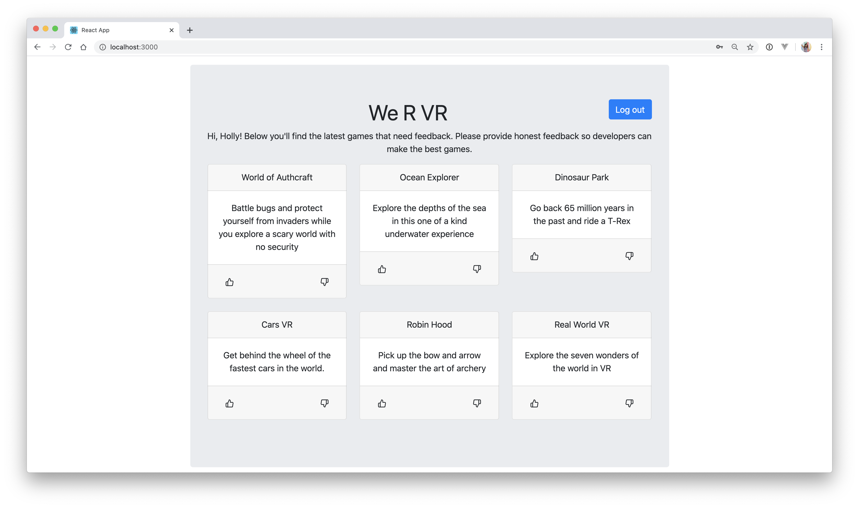 This application will show you how to build and secure a mock voting application. You'll create an API with Go and a frontend with React that will consume your API. You'll secure your API using Auth0 so that only authenticated users can access and vote on products.