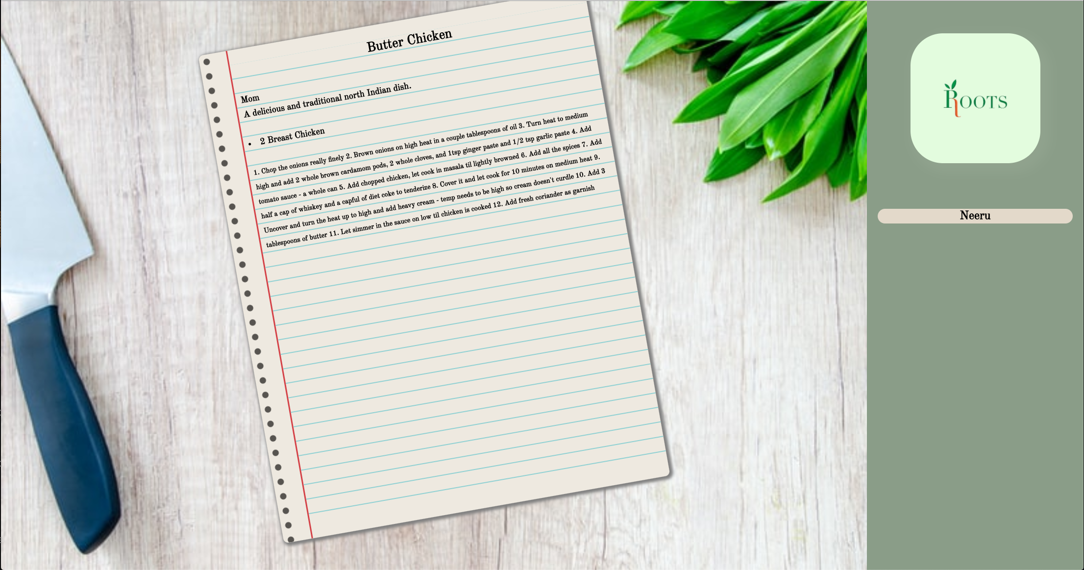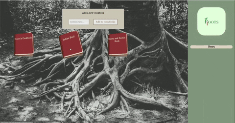 Roots is a site that allows for a user to keep family cookbooks in a digital format, adding recipes to multiple books and being able to view and navigate the books and recipes through a pleasant UI/UX.