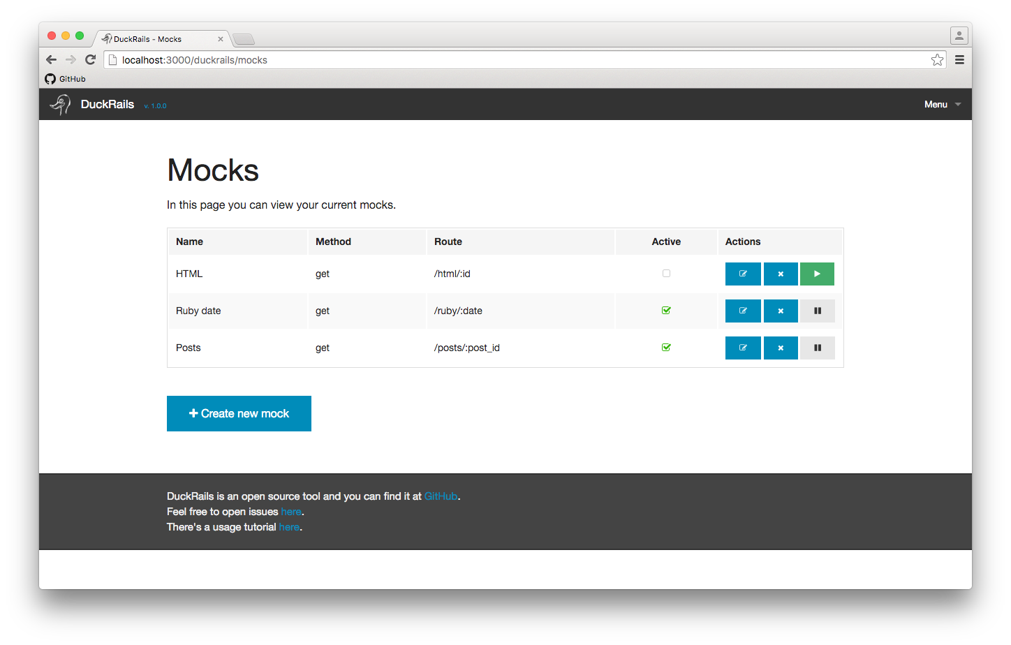 Mocks index page