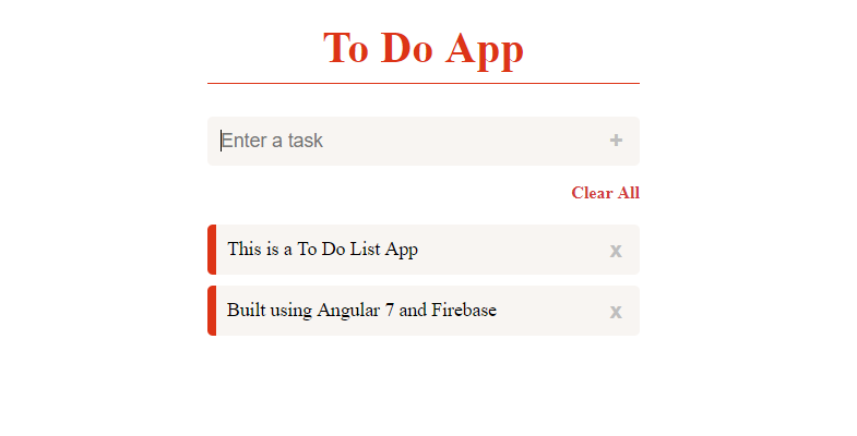 The application is hosted on the firebase and you can view it here: https://ng-todo-820f1.firebaseapp.com/