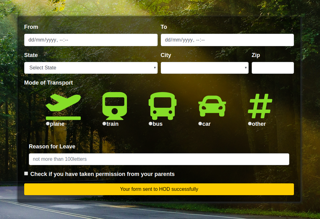 OutPass system for hostels where students get to take permission of both their respective HOD's and their Chief Wardens just by filling up a simple form.