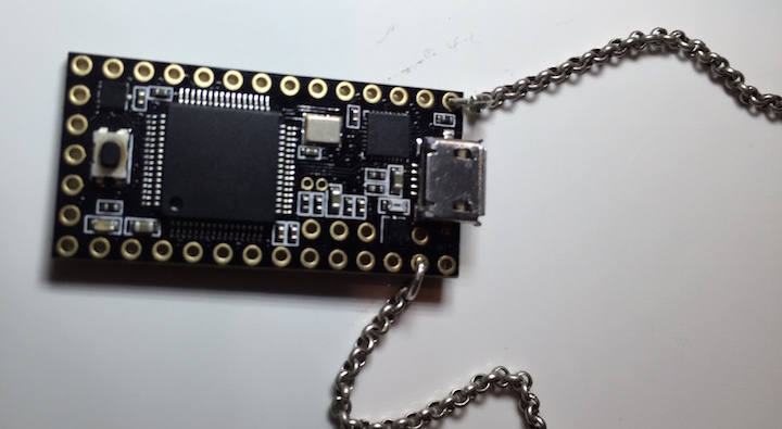 USBdriveby is a device you stylishly wear around your neck which can quickly and covertly install a backdoor and override DNS settings on an unlocked machine via USB in a matter of seconds. It does this by emulating a keyboard and mouse, blindly typing controlled commands, flailing the mouse pointer around and weaponizing mouse clicks.