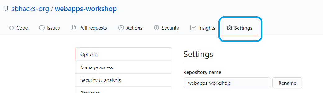 Click the 'Settings' Tab on your repository.