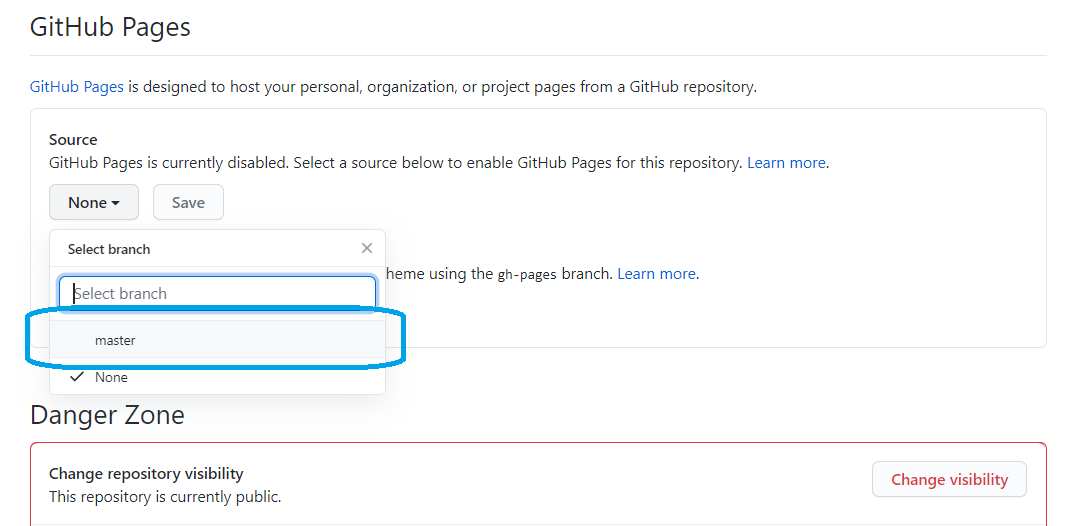 Scroll down to the Section labeled 'GitHub Pages.' Then for the Source, click on the 'master' branch to deploy. GitHub reads code from that 'branch' to host your website from.