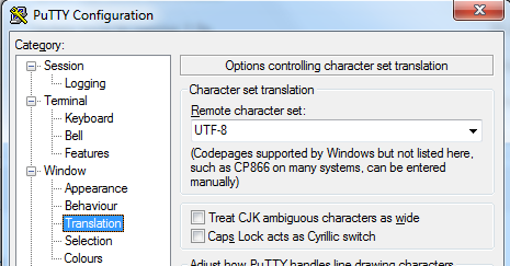 When using PuTTY the "remote character set" option must be set to UTF-8. This makes the tmux window separator appear as a line instead of a bunch of random characters.