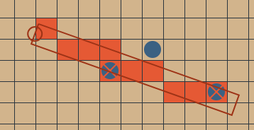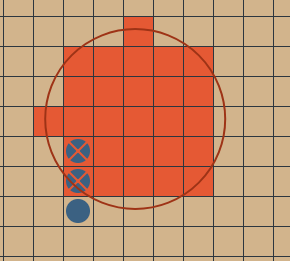 Aiming with a circle is easy! Just click on the map where the center of the circle should be! The squares that are hit will light up, and Units that are hit will be marked with a cross. You can also click and drag to move the center with your mouse.